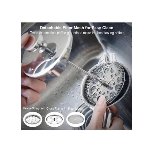 4. High Quality Double Wall Stainless Steel: The high-quality French press tea and coffee brewer 12 oz (350 ml) coffee pot is made from high-quality 18/10 stainless steel . The doubled walled, insulated pot will keep your coffee or tea hot for up to 2 hours. Dishwasher-safe.